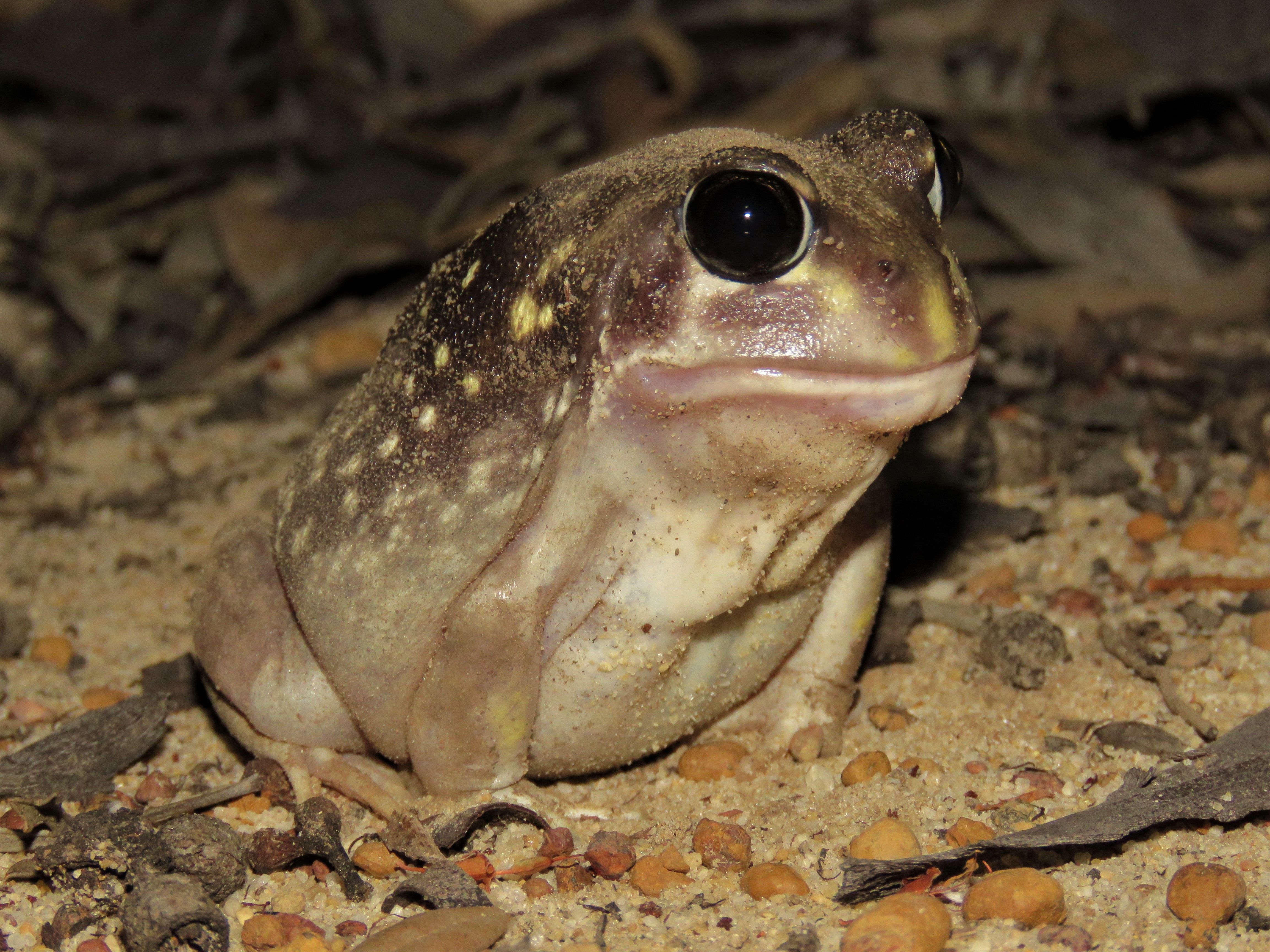 At Dryandra Village I had an excellent dinner with the dig survey team before driving around the woodland for a few hours of spotlighting. Brushtail Possums and Woylies (Brush-tailed Bettongs) were abundant as always, and there was also Western Spotted Frog sitting nonchalantly in the dry conditions.
